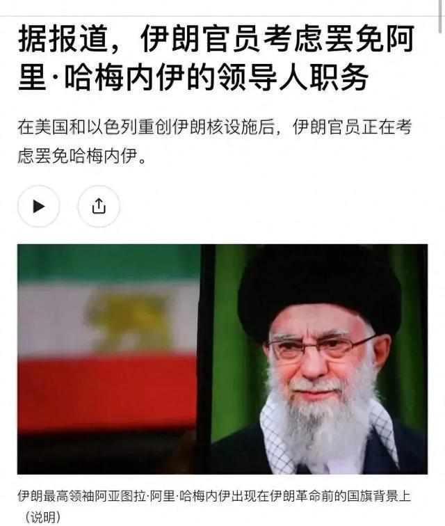 先来说第一件事。 6月23日,美国媒体《大西洋月刊》引述伊朗内部人士消息,称伊朗政府当前对哈梅内伊的不满正在加剧,部分人正在考虑罢免哈梅内伊,换一个新领导人上台和美国打好关系,甚至是让前总统哈桑·鲁哈尼来取代哈梅内伊的位置。