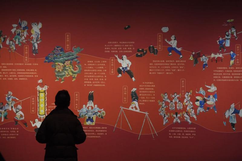 展品中有高达180厘米的清代舞狮道具,其头部彩漆装饰、颈部铜铃作响,额头宽大饱满、眼睛炯炯有神,威武造型再现庙会驱邪避凶的民俗仪式,还有清代妙峰山香客朝山进香盛况的绘卷等。展览打破传统文物陈列模式,通过“静态文物+动态场景”的沉浸式呈现,让观众瞬间“穿越”到热闹非凡的传统庙会。